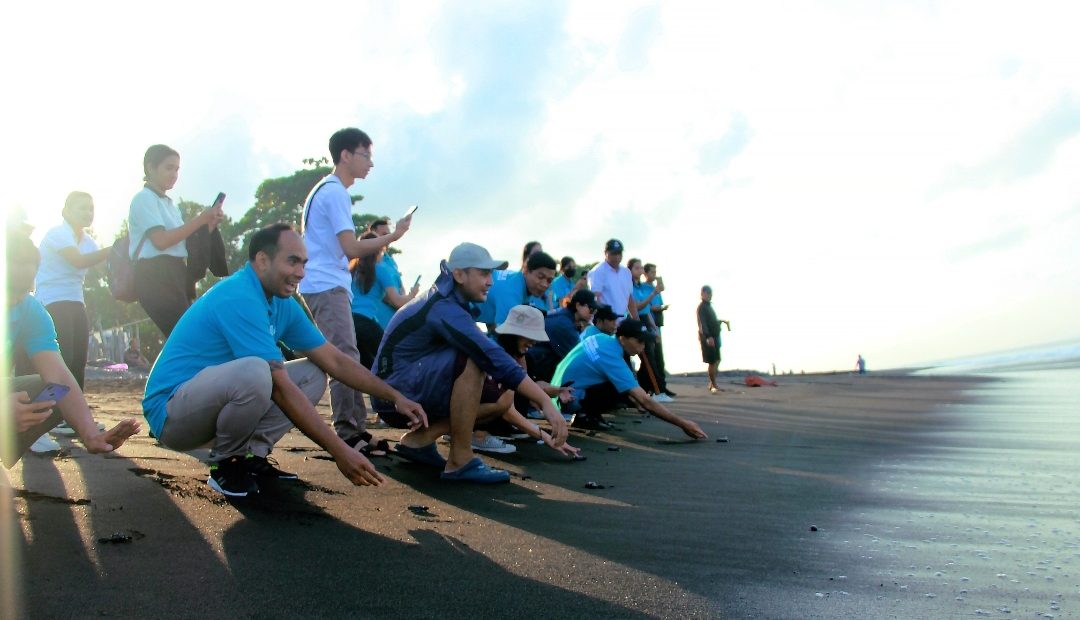 Setelah pembersihan pantai dilakukan, para partisipan dari Taman Safari Bali ikut serta dalam melepaskan tukik yang telah disiapkan untuk dilepas kembali ke laut. Hal ini tentunya memberikan kontribusi nyata dalam upaya konservasi untuk melindungi spesies yang terancam punah ini.