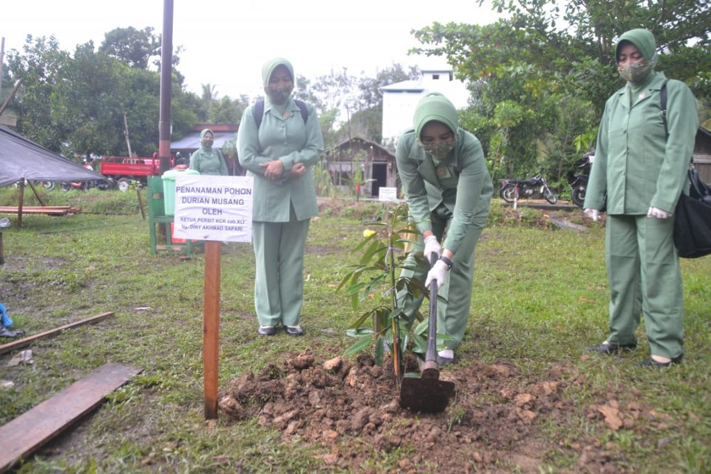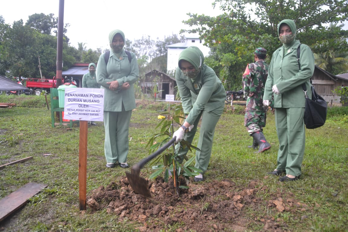 Salah satu bentuk dukungan tersebut adalah dengan menanam pohon penghijauan di lokasi kegiatan TMMD. Penanaman pohon dilakukan di Desa Bapinang Hulu oleh Ketua Persit KCK Cabang XLI Kodim 1015/Spt, Dini Akhmad Safari beserta anggotanya.