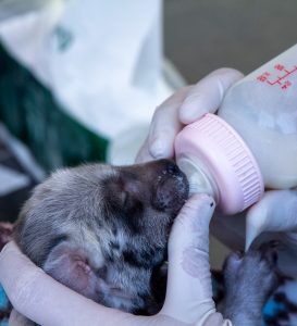 Menurut dr. Yohana Kusumaningtyas, dokter hewan senior Bali Safari, “Dua bayi Hyena yang masih berusia 1 bulan ini, kini dirawat secara intensif oleh tim dokter. Pasalnya, setelah 6 hari lahir, ASI ibu Adiiya tidak mencukupi kebutuhan anakannya. Karena itu, sebagai gantinya, bayi-bayi Hyena mendapat susu formula setiap 4 jam.