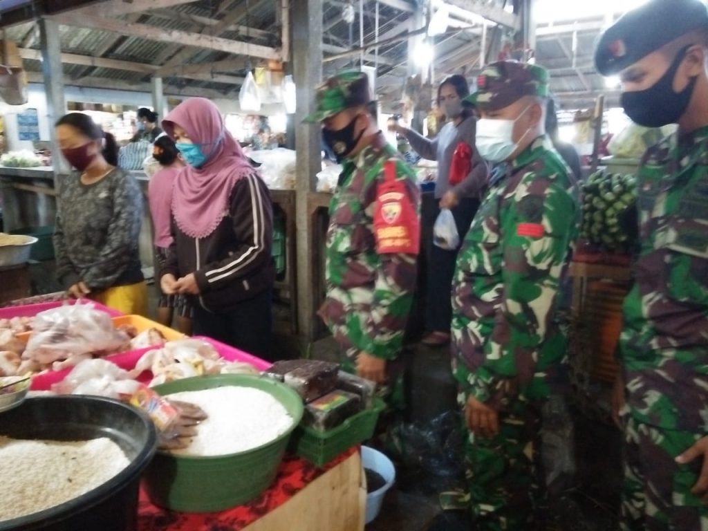 Sidak penerapan Prokes oleh Koramil dan Aparat Kecamatan Petang di Pasar Adat Carangsari
