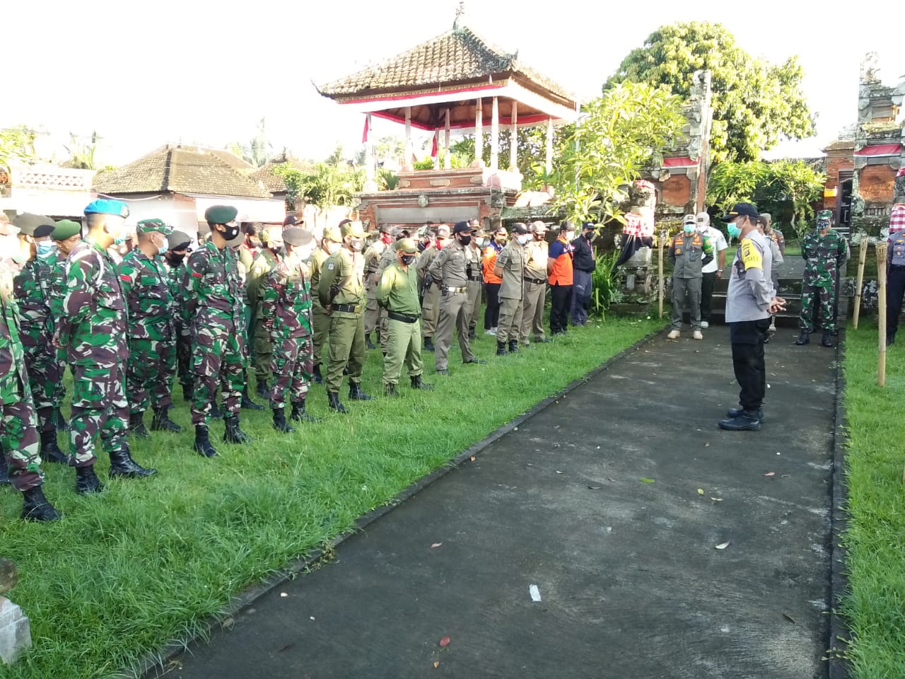 Mangupura, Lintasbali.com – Bertempat di depan pasar Desa Adat Carangsari, Kecamatan Petang, Kabupaten Badung, dilaksanakan apel gabungan inspeksi mendadak (Sidak) dan yustisi pendisiplinan dalam rangka penerapan Peraturan Gubernur Bali Nokor 46 Tahun 2020 tentang disiplin protokol kesehatan serta penegakan hukum protokol kesehatan sebagai upaya pencegahan dan pengendalian Corona Virus 19 (COVID-19) dalam tatanan kehidupan Era Baru yang dipimpin oleh Camat Petang I Wayan Darma, S.sos., MAP., Minggu, (29/11).