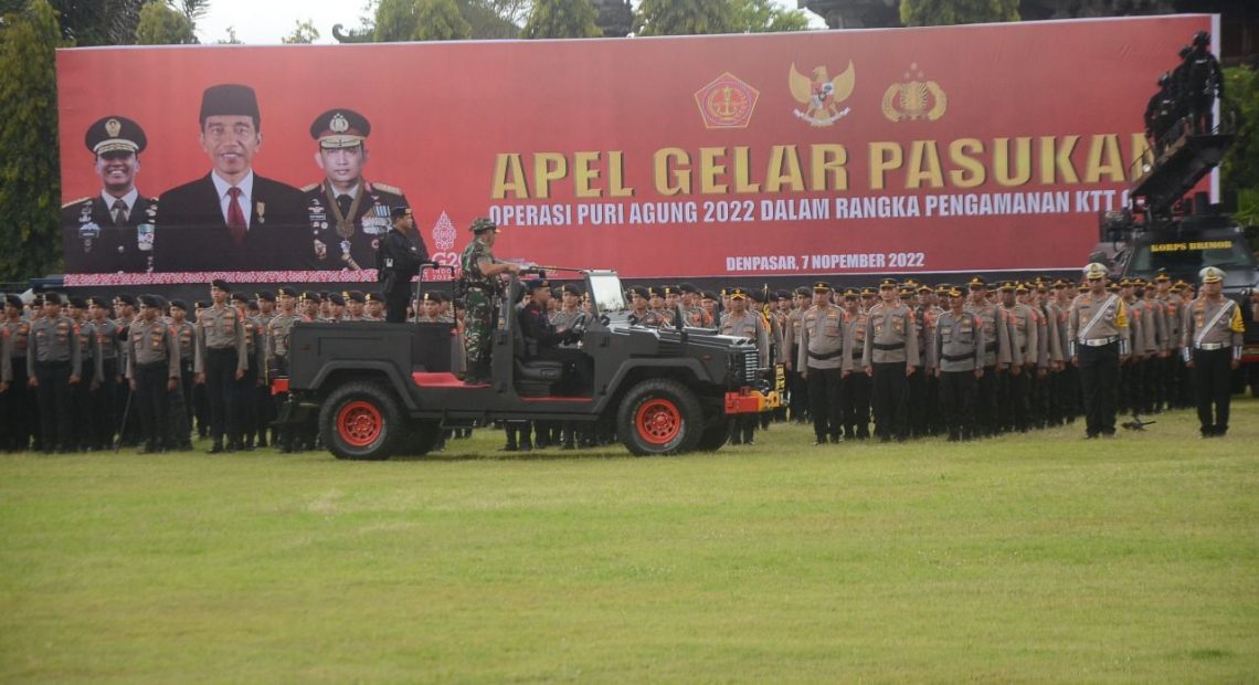 “Untuk mengamankan KTT G20, Polri menyelenggarakan Operasi Puri Agung 2022 mulai tanggal 8-17 November 2022 di tiga wilayah hukum yaitu, Polda Bali, Polda Jatim dan Polda NTB. Operasi kepolisian ini akan menjadi Etalase Polri di mata Internasional dengan melibatkan 9700 personel dan 3669 pasukan cadangan yang ada di Mako Brimob Polri dan 11 Sat Brimobda Bali dengan dukungan teknologi yang terintegrasi melalui Command Center,” sambungnya.