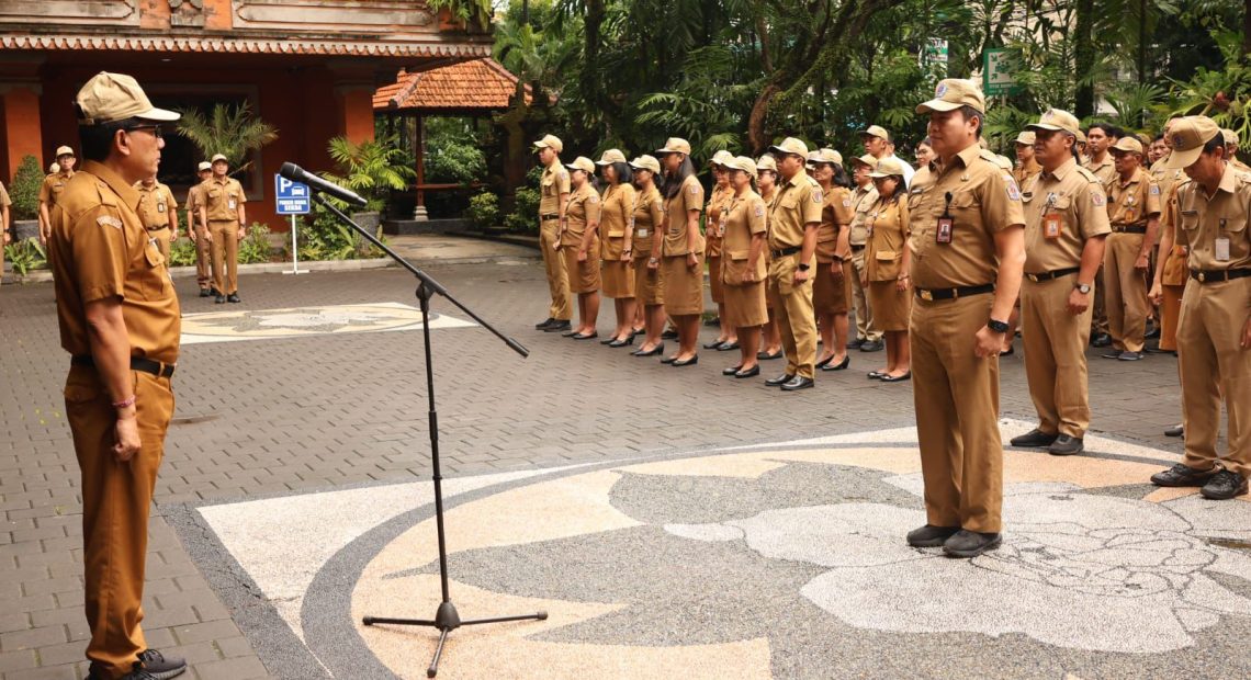 DENPASAR, lintasbali.com – Pj. Sekretaris Daerah Kota Denpasar, IGN Eddy Mulya memimpin apel disiplin Aparatur Sipil Negara (ASN) di Lingkungan Sekretariat Daerah Kota Denpasar yang digelar di halaman Kantor Wali Kota Denpasar, pada Senin, 5 Januari 2026 pagi.
