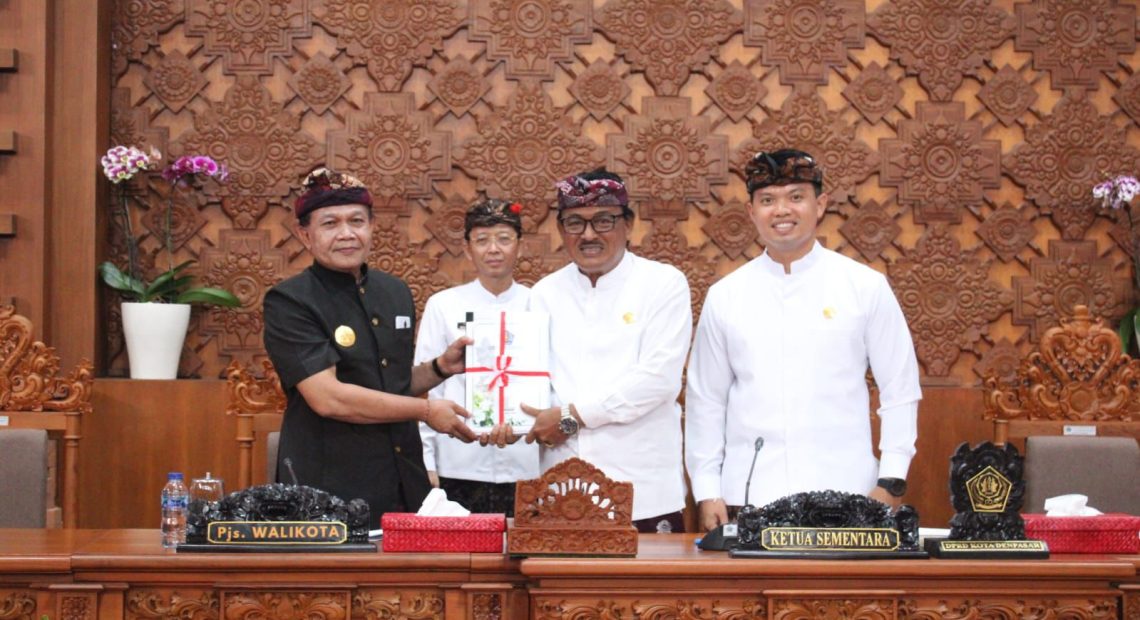 DENPASAR, lintasbali.com – Pjs. Walikota Denpasar, I Dewa Gede Mahendra Putra secara resmi menyampaikan Rancangan Peraturan Daerah (Ranperda) tentang Anggaran Pendapatan dan Belanja Daerah (APBD) Kota Denpasar Tahun Anggaran 2025. Hal tersebut disampaikan dalam Pembukaan Sidang Paripurna DPRD Kota Denpasar yang dipimpin Ketua Sementara DPRD Kota Denpasar, I Gusti Ngurah Gede bersama Wakil Ketua Sementara, Ida Bagus Yoga Adi Putra di Gedung DPRD Kota Denpasar, Kamis, 3 Oktober 2024.