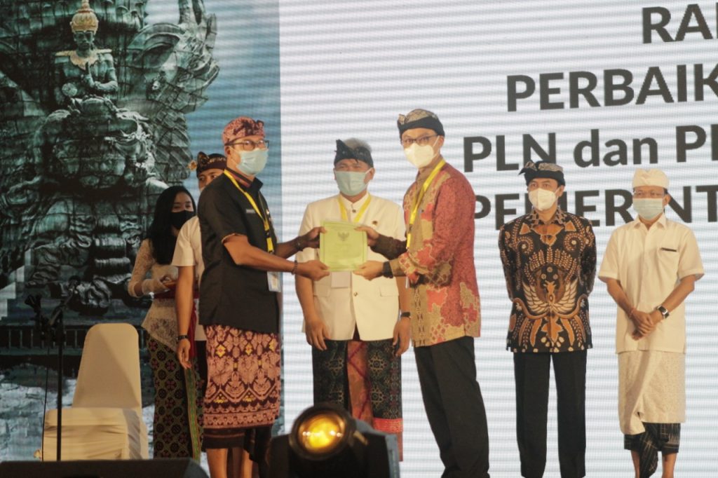 Sertifikat diserahkan secara simbolis oleh Inspektur Jenderal Kementerian ATR/BPN, Sunraizal, kepada Direktur Bisnis Regional Jawa Madura Bali, Haryanto W. S, serta disaksikan langsung oleh Wakil Ketua KPK, Lili Pintauli Siregar, Wakil Direktur Utama PLN Darmawan Prasodjo, Gubernur Bali, I Wayan Koster, Direktur Jenderal Bina Keuangan Daerah Kementerian Dalam Negeri, Mochamad Ardian Noervianto, dan Deputi Bidang Hukum dan Perundang-Undangan Kementerian BUMN, Carlo Brix Tewu.