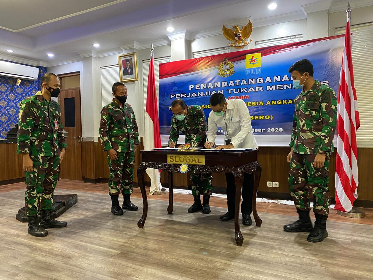 Penandatanganan dilakukan langsung oleh Inspektur Jenderal Angkatan Laut, Laksamana Muda TNI Moelyanto yang diwakili oleh Asisten Logistik Angkatan Laut Laksamana Pertama TNI Puguh Santoso dan Wakil Direktur Utama PLN, Darmawan Prasodjo, di Markas Besar TNI Al, Cilangkap, Jakarta, Senin (9/11).