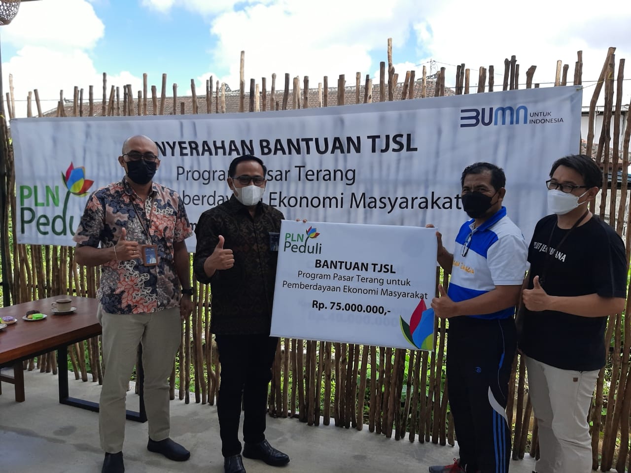 Bertajuk Pasar Terang untuk Pemberdayaan Masyarakat, program PLN Peduli kali ini disalurkan dalam bentuk pembangunan ruang kreatif UMKM, beserta kelengkapan pendukung lainnya dengan total sebesar Rp 75 juta.