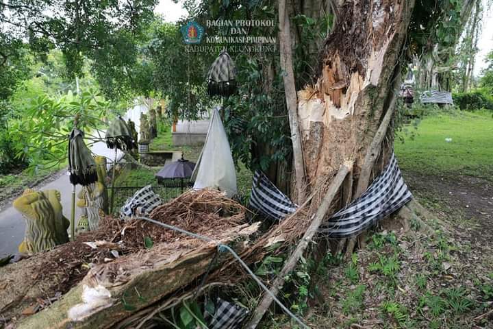 Wabup Kasta yang juga tokoh asal Desa Akah itu menjelaskan, kejadian ini merusak bagian atap dari bangunan wantilan di Setra Akah. Demikian halnya senderan tembok juga mengalami kerusakan. “Saya menerima informasi, pohon ini tumbang sekitar pukul 11 siang,” ujar Wabup Kasta.
