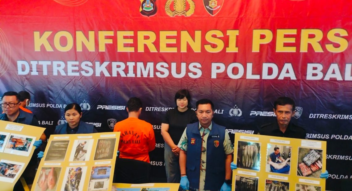 DENPASAR, lintasbali.com – Polda Bali Amankan 1,8 Ton Daging Ikan Ilegal Di Pelabuhan Gilimanuk. Pengungkapan penyelundupan tersebut disampaikan saat Kasubdit IV Ditreskrimsus AKBP Iqbal Sengaji S.I.K., M.Si., didampingi Kabagops AKBP Ns. Ni Nyoman Yuniartini S.Kep., Para Kanit dan Kasubid Penmas Bidhumas Polda Bali AKBP Ketut Ekajaya S.Sos. M.H., didepan para awak media di loby Ditreskrimsus Polda Bali pada Jumat, 29 Nopember 2024.
