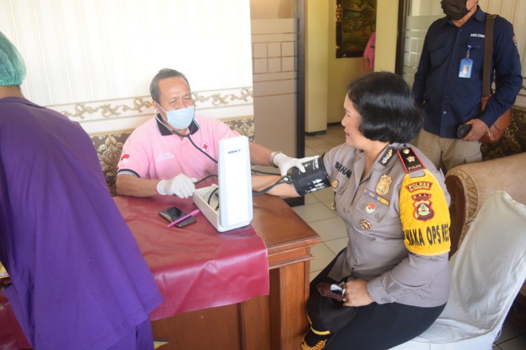 “Setetes darah ini dapat menjadi salah satu bentuk kepekaan dan kepedulian kami terhadap masyarakat”, ungkap AKBP Bima, usai pengambilan darah oleh petugas.