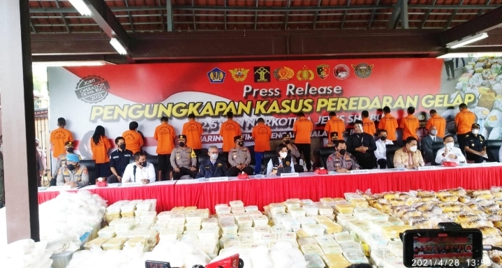 “Kami ungkap kurang lebih 2,5 ton narkoba sabu asal Timur Tengah, Malaysia yang masuk ke Indonesia,” kata Sigit dalam jumpa pers di Lapangan Bhayangkara, Rabu (28/4).