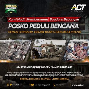 “Kami berharap dengan dibukanya posko peduli bencana yang berada di Bali ini dapat memudahkan masyarakat di Bali dalam mendermakan bantuannya untuk masyarakat yang tengah terdampak bencana di Indonesia, Mulai dari tanah longsor Sumedang, gempa bumi Majene Sulbar, dan Banjir Bandang Kalimantan Selatan Serta Banjir Bandang Jembrana Bali.