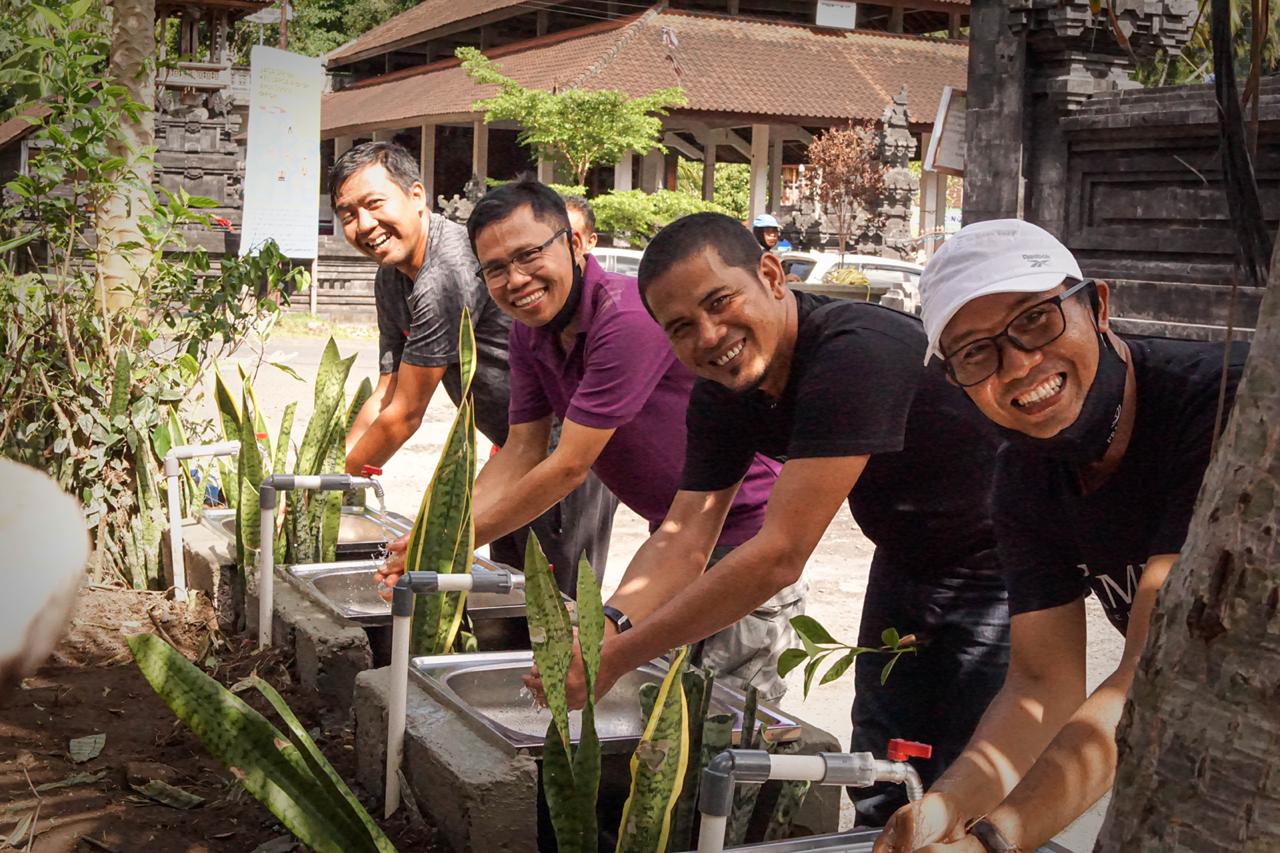 Adapun tempat cuci tangan ini dibuat secara langsung oleh segenap team Pramana Experience, sebagai penerjemahan konsep Tri Hita Karana yang menjadi landasan perusahaan selama ini.