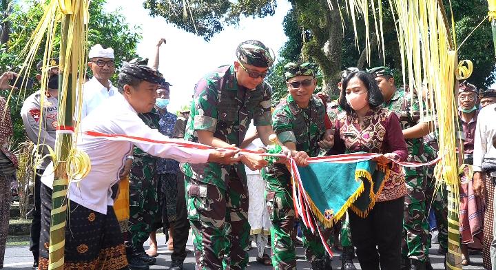 Mangupura – Dandim 1611/Badung Kolonel Inf Dody Triyo Hadi, S.Sos., M.Si. mendampingi Danrem 163/Wira Satya Brigjen TNI Chorul Anam, S.E, M.M. dalam rangka Peresmian 100 titik Pompa Hidram Program TNI AD Manunggal Air Bersih oleh Kepala Staf Angkatan Darat Jenderal TNI Dr. Dudung Abdurachman, S.E., M.M. secara Video Conference yang diikuti sekitar 150 orang di Balai Subak Ayunan Br. Badung Desa Ayunan Kec. Abiansemal Kab. Badung. Jum’at (12/08/2022)
