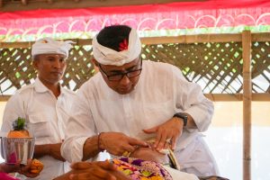 Walikota Denpasar, Jaya Negara saat prosesi nyanggingin salah satu peserta metatah masal di Kepaon