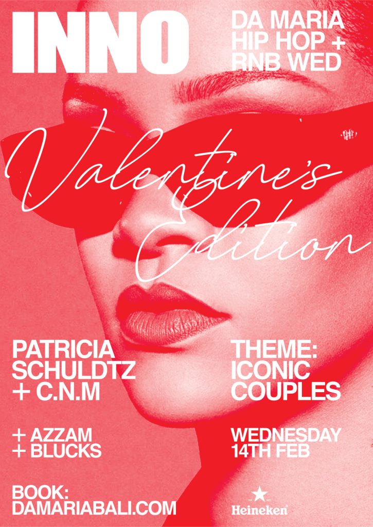 Edisi Valentine, Da Maria akan menyuguhkan hidangan Italia Da Maria yang terkenal lezat antara pukul 19.00 dan pukul 21.30. Sebelum Anda naik ke lantai dansa dengan deretan DJ bergilir mulai pukul 22.00, hingga pukul 03.00.