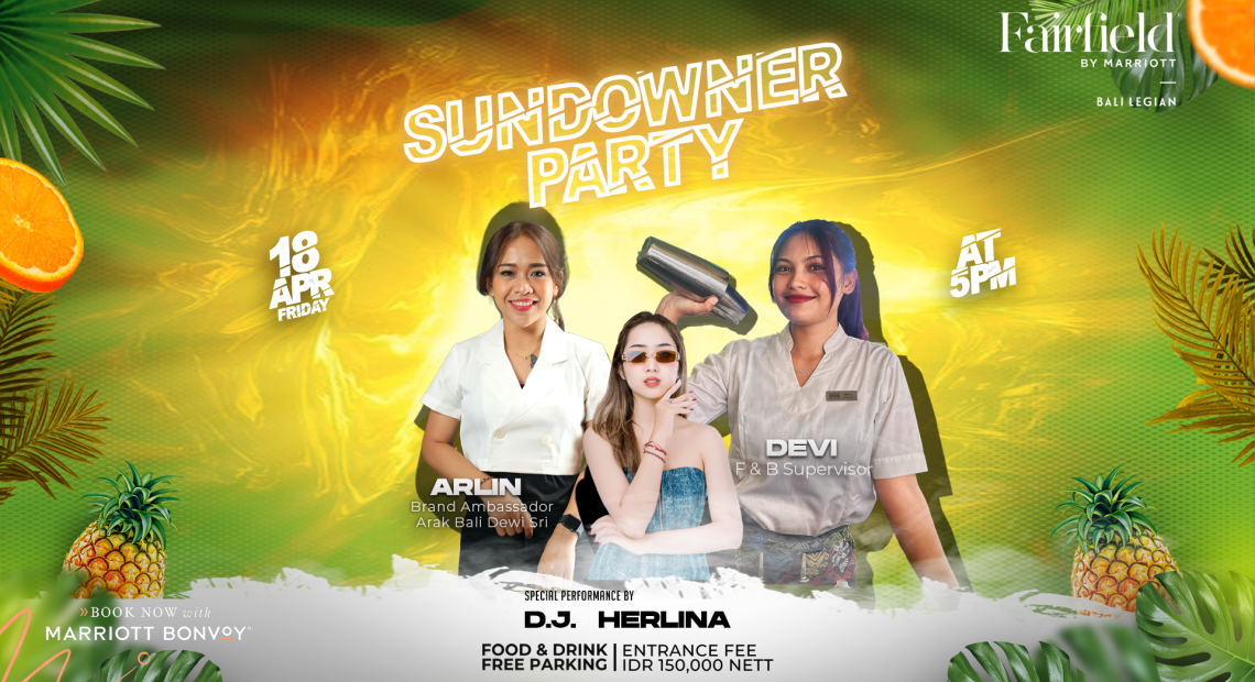 Fairfield by Marriott Bali Legian mengundang Anda untuk bergabung dalam Sundowner Party yang akan digelar di Satellite Bar Alfresco pada Jumat, 18 April 2025 mulai pukul 17.00 WITA.
