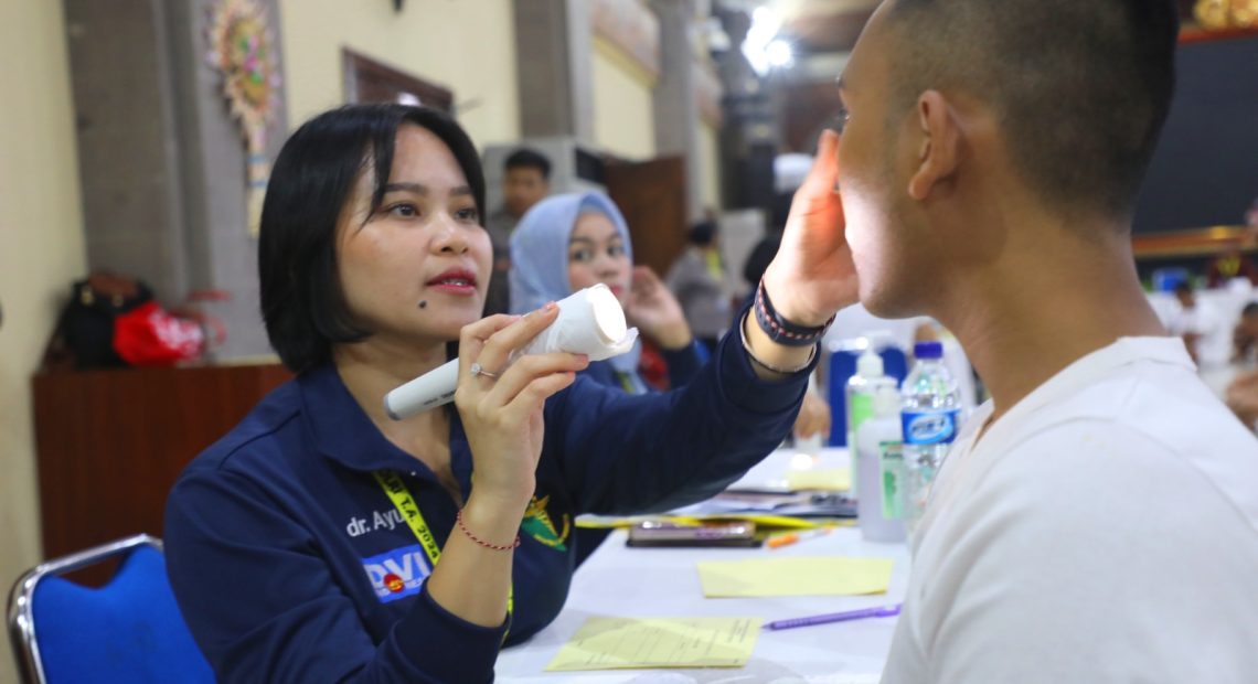 DENPASAR, lintasbali.com – Sebanyak 2.403 orang telah mengikuti tes kesehatan tahap 1 rekrutmen Bintara Polri TA 2024 di Gedung Presisi Polda Bali. Dari 2.403 itu, sebanyak 2.291 orang mengikuti seleksi Bintara PTU (Polisi Tugas Umum), 47 orang Bintara Rekrpro (Rekrutmen Proaktif) dan 65 orang Bintara Kompetensi Khusus (Bakomsus).