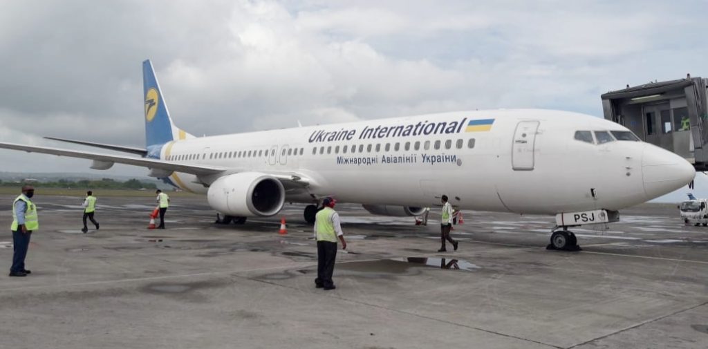Pesawat khusus Ukraine International Airline yang datang langsung dari Ukarina menjemput warganya yang sedang berada di Bali untuk kembali pulang.