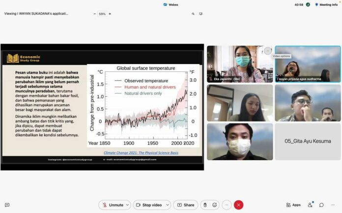 Denpasar – Ruang Diskusi Ekonomi Agustus yang mendiskusikan buku yang berjudul “The Clinate Casino: Risk, Uncertainty, and Economics for a Warminf World”, berlangsung pada rabu (24/8/2022).
