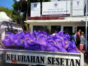 DENPASAR, lintasbali.com – Sebagai bentuk kepedulian dan saling menguatkan di tengah pandemi, Konsul Kehormatan Ukarina di Bali menyerahkan bantuan sosial kemanusiaan berupa 1,5 ton beras dan sembako kepada masyarakat kategori Rumah Tangga Miskin (RTM) di wilayah Kelurahan Sesetan Denpasar Selatan, Selasa (24/8/2021).