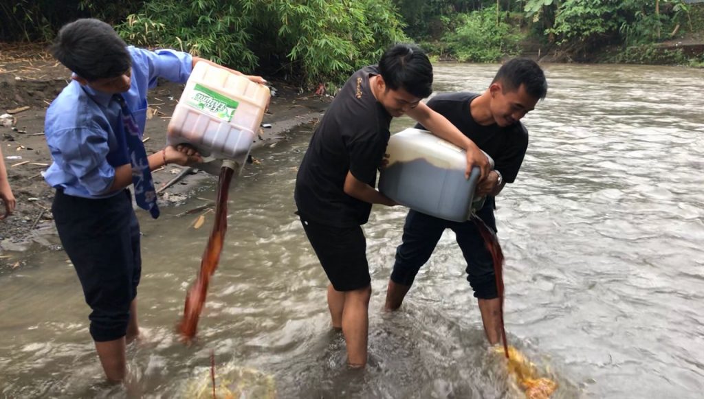 Penyiraman Eco Enzyme ke Sungai oleh PD KMHDI Bali