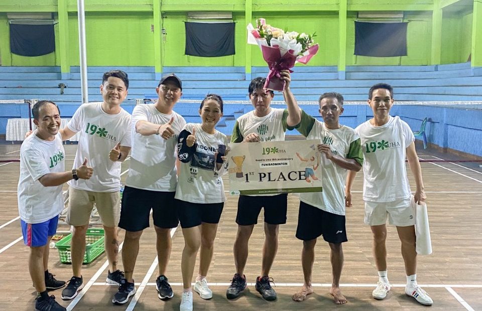 Deasy Swandarini, General Manager Tanah Gajah Ubud mengungkapkan rasa bangga terhadap timnya, dengan latihan berkala dan keringat di lapangan akhirnya terbayar dengan menjadi pemenang pada UHA Fun Badminton ini.