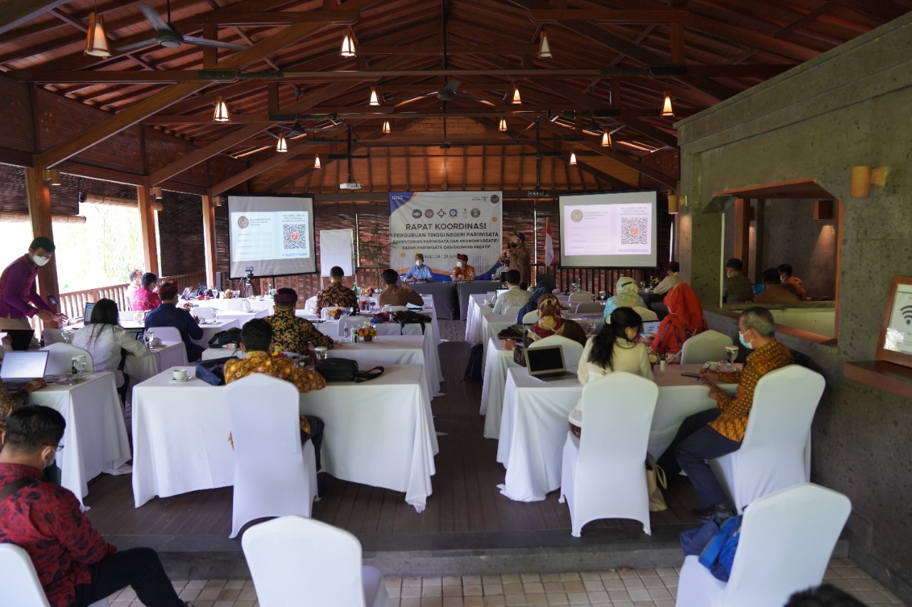 Dihadiri oleh Sekretaris Kemenparekraf/ Sekretaris Baparekraf, Ni Wayan Giri Adnyani, Rapat Koordinasi Perguruan Tinggi Negeri Pariwisata 2021 berlangsung secara hybrid, dimana sebagian peserta mengikuti acara tersebut secara daring. Acara yang berlangsung selama dua hari tersebut membahas beberapa poin terkait mekanisme pembiayaan program pendidikan ASN, Kebutuhan SDM ASN Program Kedinasan, serta banyak lainnya.