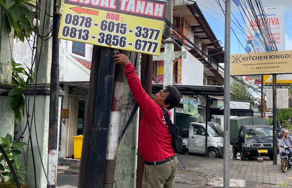 Sat Pol PP Denpasar Tertibkan Alat Peraga Promosi di Fasilitas Umum