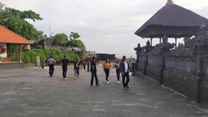Meski sudah dibuka, Tanah Lot Bali belum banyak didatangi wisatawan. Kebanyakan warga lokal sekitar dan pengunjung sekitar Tabanan.