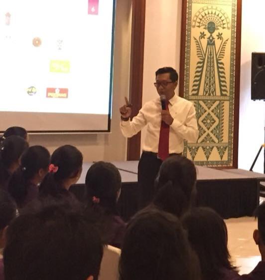 Ketut Swabawa, Founder SWAHA Hospitality Bali dan Vice Chairman IHGMA Bali saat memberikan paparannya di salah satu Kampus Pariwisata di Bali.