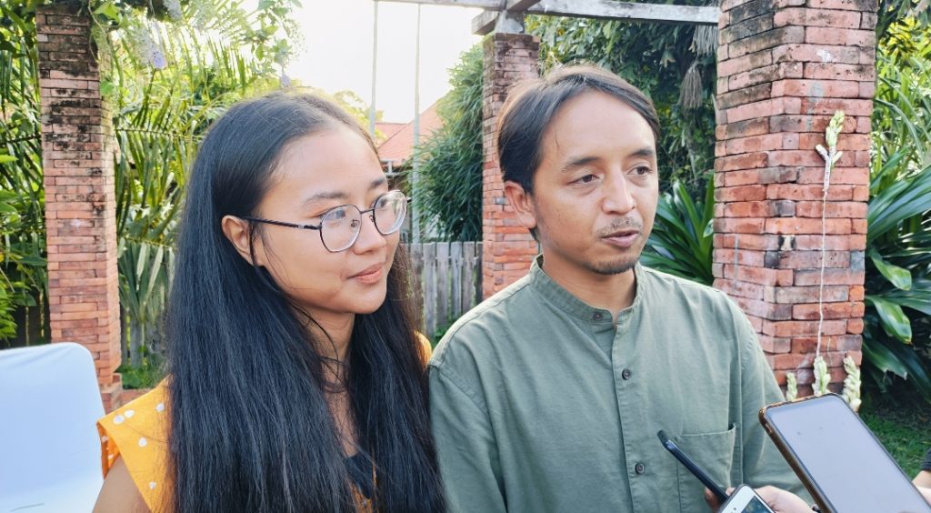 Gilang Ramadhan dan Risa Vibia saat diwawancarai oleh wartawan jelang pembukaan Ambarukmo “berKelana di Bali”