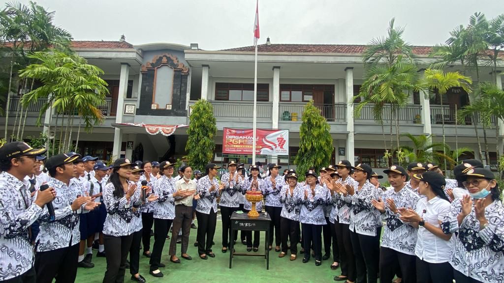 DENPASAR, lintasbali.com – Memperingati Hari Guru Nasional (HGN) tahun 2022 dan HUT PGRI ke-77 yang jatuh pada Jumat, 25 November 2022, hampir seluruh sekolah di Denpasar merayakannya dengan menggelar berbagai jenis kegiatan dan pesta, salah satunya SMP Wisata Sanur.