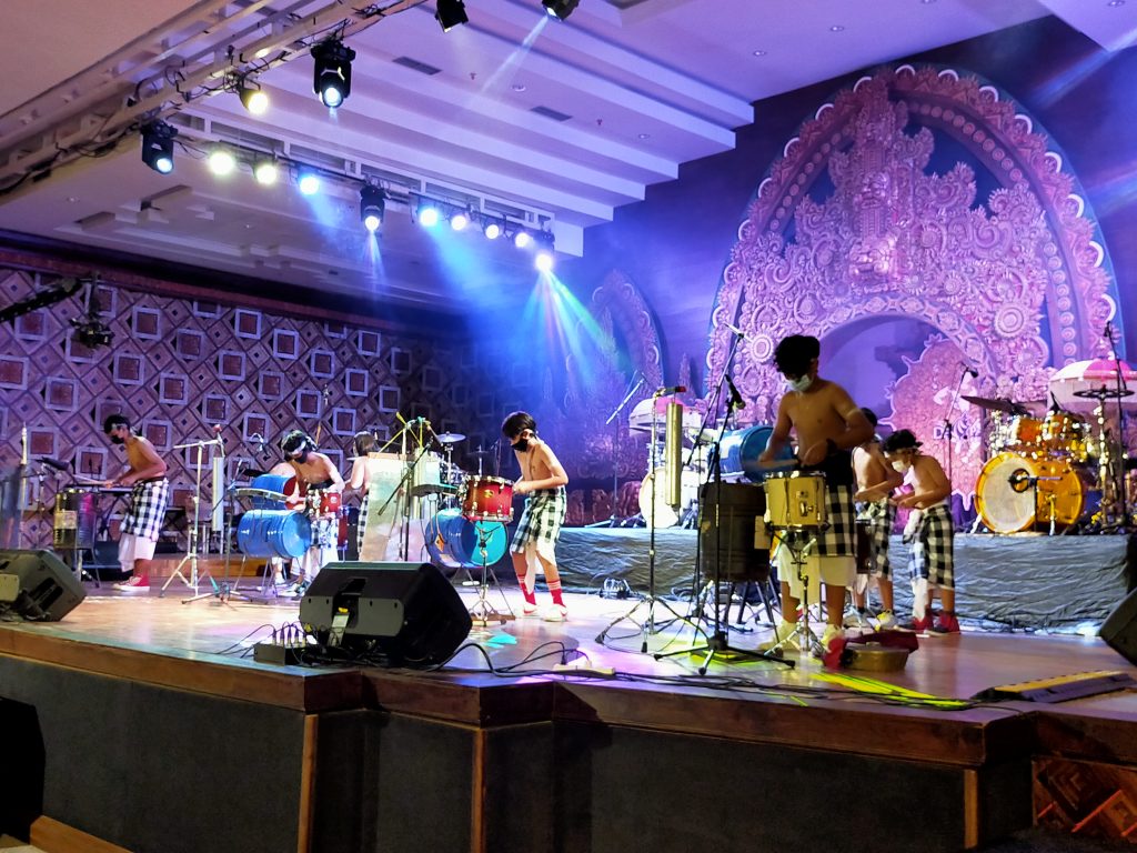 Para pendukung acara yang merupakan anggota dari Bali Drumholics sukses membawakan sebuah pertunjukan kreatif selama 60 menit bertema “RIMBA” yang mempersonifikasikan manusia yang ditengah proses pembangunan yang tiada henti dan kesibukan duniawi untuk mengejar materi, tetap merindukan kesejukan rimba.
