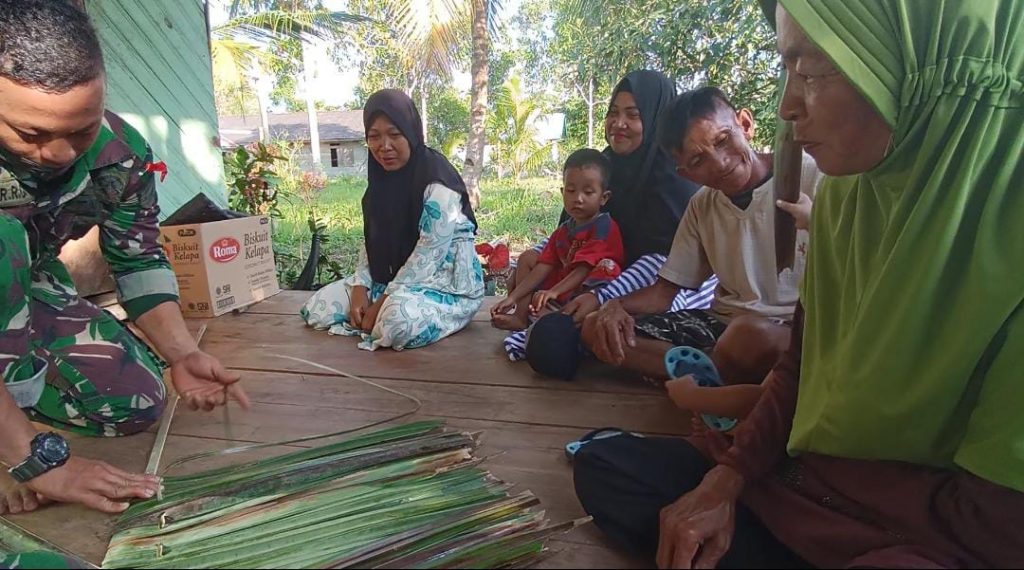 Sampit, Lintasbali.com – Pagi itu suasana terlihat lebih ramai di rumah ibu Arbainah, seorang pengusaha atap daun nipah di Desa Bapinang Hilir Kecamatan Pulau Hanaut, Kabupaten Kotawaringin Timur, Kalimantan Tengah. Beberapa pria berbaju loreng dan berambut cepak tampak berbaur dengan warga yang sedang merangkai daun nipah untuk dibuat menjadi atap rumah.