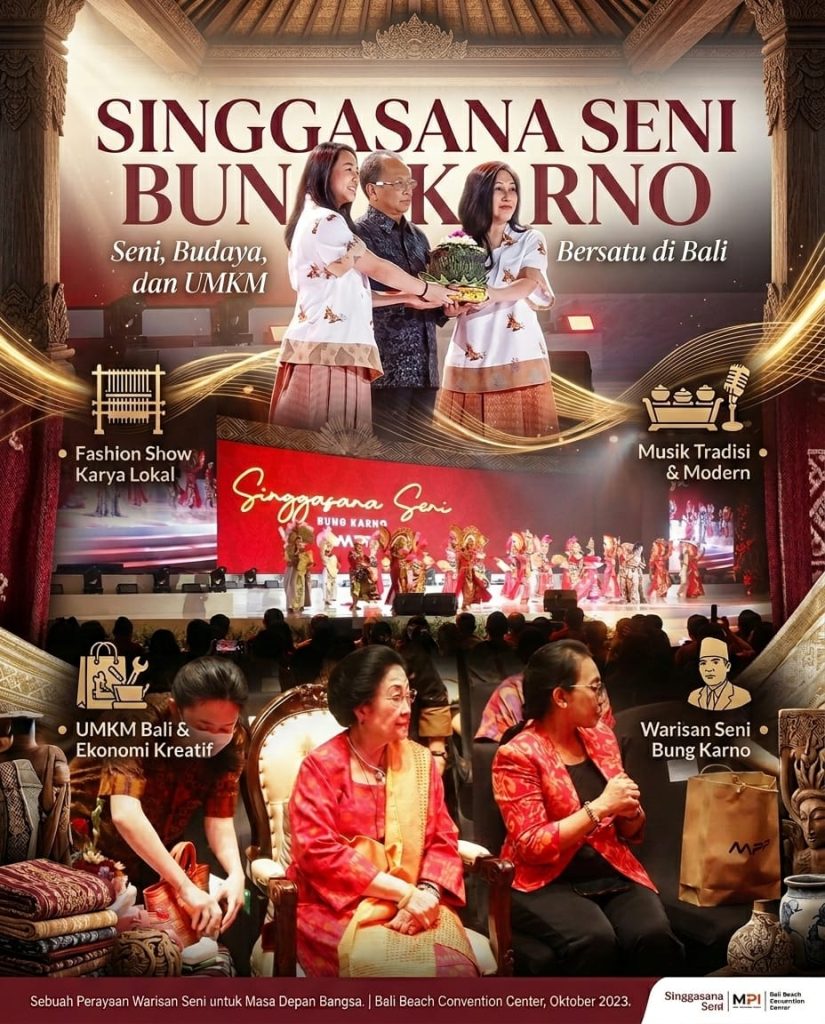 DENPASAR, lintasbali.com – Pagelaran Singgasana Seni Bung Karno berlangsung meriah di Bali Beach Convention Center, Sanur, Sabtu, 28 Pebruari 2026. Kegiatan ini menjadi panggung kolaborasi seni dan budaya sekaligus penguatan ekonomi kerakyatan melalui peragaan busana, pertunjukan musik, pameran industri kecil menengah (IKM), serta bazar kuliner usaha mikro, kecil, dan menengah (UMKM).