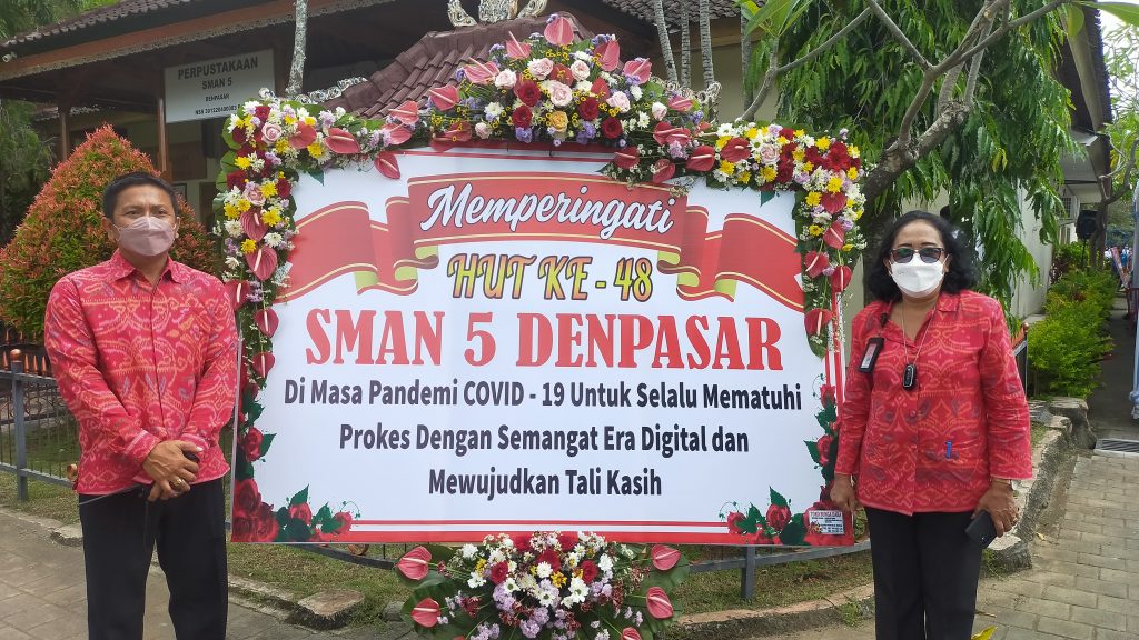 Perayaan HUT ke-48 SMA Negeri 5 Denpasar kali ini mengambil tema “Di Masa Pandemi Covid-19 untuk Selalu Mematuhi Protokol Kesehatan Dengan Semangat Era Digital dan Mewujudkan Tali Kasih”. (AR)