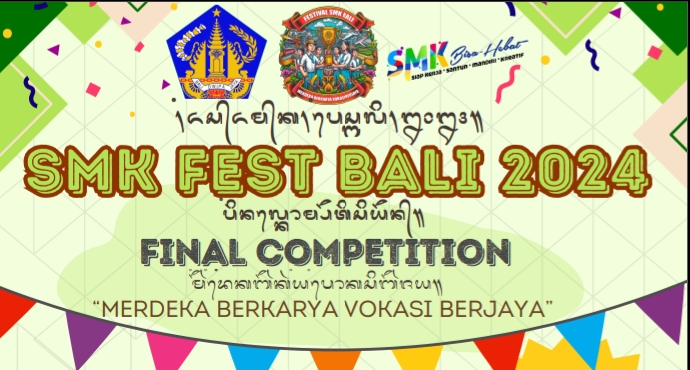 SMK FEST Bali 2024 mengusung tema “Merdeka Berkarya Vokasi Berjaya” memiliki makna bahwa implementasi kurikulum merdeka memberikan kesempatan kepada seluruh civitas akademika khususnya SMK untuk menunjukkan potensi, kreativitas dan ide-idenya dalam sebuah karya.