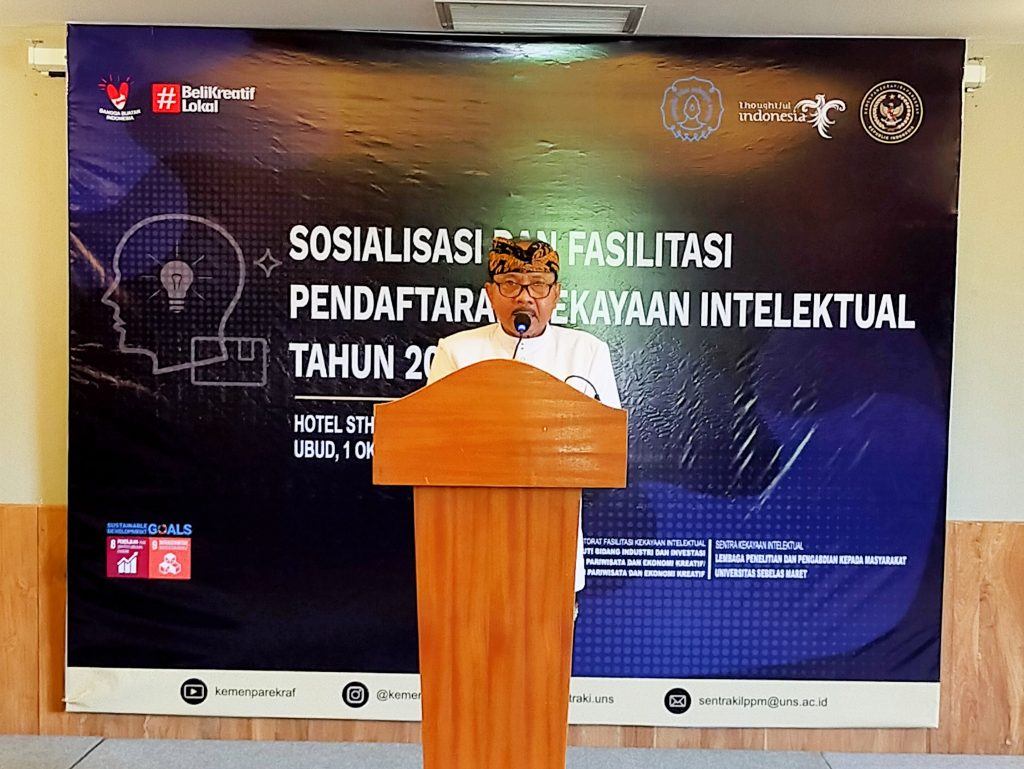 Gianyar, Lintasbali.com – Sosialisasi dan Fasilitasi Pendaftaran Kekayaan Intelektual yang dilaksanakan oleh Direktorat Fasilitasi Kekayaan Intelektual Deputi Bidang Industri dan Investasi Kementerian Pariwisata dan Ekonomi Kreatif/ Badan Pariwisata dan Ekonomi Kreatif dengan Sentra Kekayaan Intelektual Lembaga Penelitian dan Pengabdian Kepada Masyarakat Universitas Sebelas Maret Surakarta, Kamis (1/10) disambut baik oleh Pemerintah Kabupaten Gianyar.