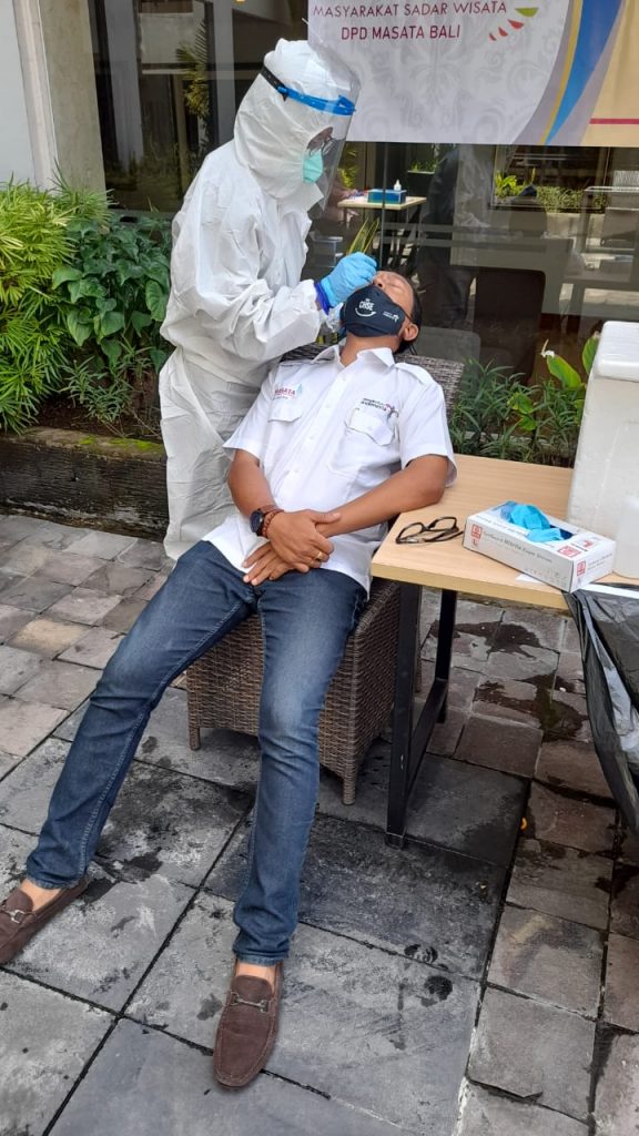 Badung, Lintasbali.com – Masyarakat Sadar Wisata (MASATA) DPD Bali mengkoordinir sekaligus mendukung kegiatan bekerjasama dengan Satgas Pengendalian COVID-19 Provinsi Bali pengecekan indikasi COVID-19 melalui Swab/ PCR test secara gratis bagi pekerja pariwisata pada Senin (21/12/2020) bertempt di H Sovereign Bali, Tuban – Kuta. Turut mendukung mensukseskan kegiatan ini adalah H Sovereign Bali dan Stanagiri Management International.