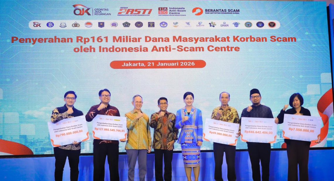 JAKARTA, lintasbali.com – Indonesia Anti-Scam Centre (IASC) berhasil mengembalikan Rp161 miliar yang merupakan dana dari 1.070 masyarakat korban scam/penipuan digital yang berhasil diblokir IASC dari 14 bank yang digunakan pelaku kejahatan penipuan. Data merupakan catatan sejak IASC mulai beroperasi, 22 November 2024 hingga 12 Januari 2026. Penyerahan pengembalian Lanjutkan Membaca...