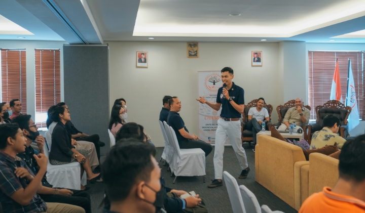 Wardi Astina, Ketua Panitia Talk Show “Leaders Talk – Think Without the Box” menyampaikan kegiatan yang dilaksanakan di Hotel The Evitel Resort Ubud pada Sabtu, 23 Juli 2022 menghadirkan 3 orang narasumber yaitu Suwamana Wahyu Putra CEO Dijiwa Sanctuaries, I Wayan Parka General Manager Arkamara Resort Ubud dan Putra Sebali General Manager Sanctoo Suites & Villas.