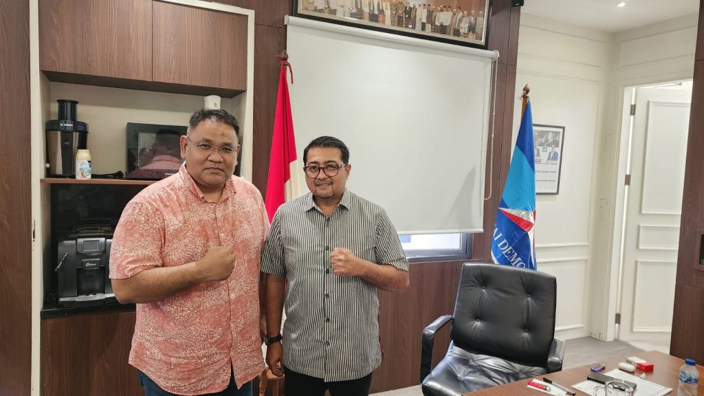 Teguh Santosa (kiri) saat menemui Sekjen Partai Demokrat Teuku Riefky Harsya