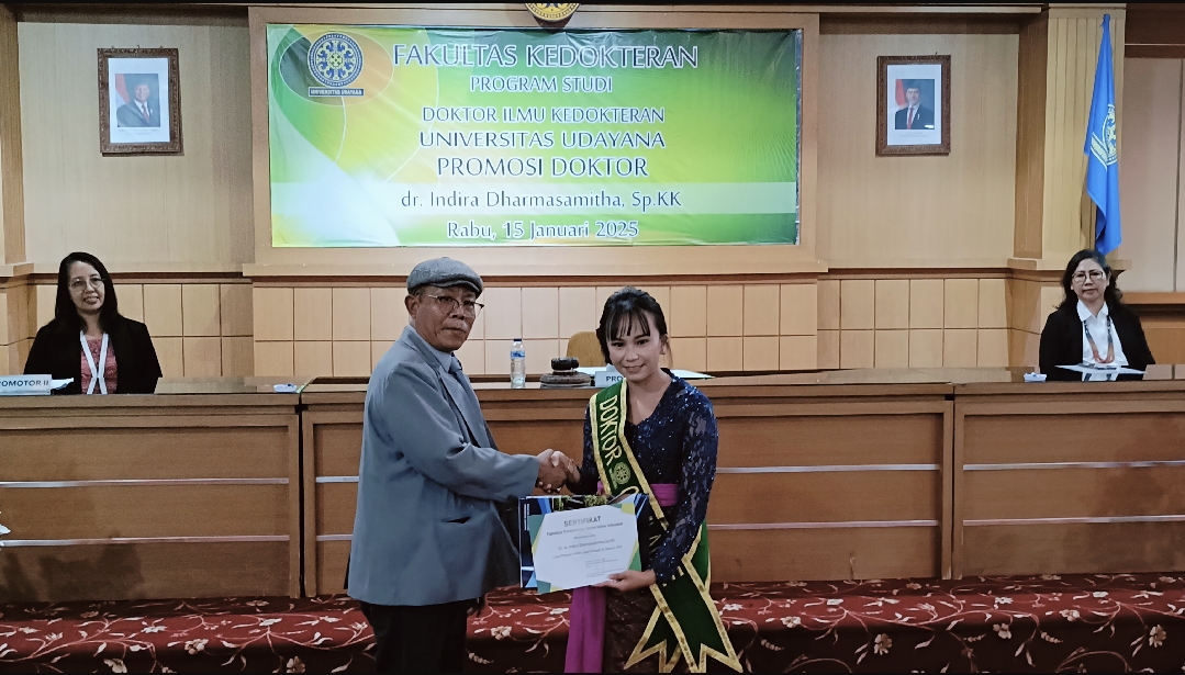 Bertindak sebagai Promotor, Prof. Dr. rer. Nat.Drs I Made Agus Gelgel Wirasuta, Apt, M.Si; Kopromotor I, Dr. dr. Luh Made Mas Rusyati, Sp.KK(K), FINSDV, FAADV; dan Kopromotor II, Dr. dr. Dyah Kanya Wati, Sp.A (K) dan telah diuji dan dinilai pada 20 Desember 2024.