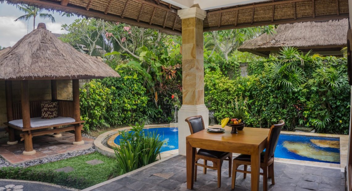 Resort ini menawarkan berbagai tipe kamar yang dirancang dengan nuansa romantis, mulai dari Suite Room hingga Private Pool Villa. Setiap kamar dilengkapi dengan bathtub yang elegan, menciptakan suasana intim dan relaks bagi pasangan yang ingin menikmati waktu berdua. Khusus bagi tamu yang memilih menginap di Private Villa, suasana semakin istimewa dengan kolam renang pribadi dan garden bergaya khas Bali.