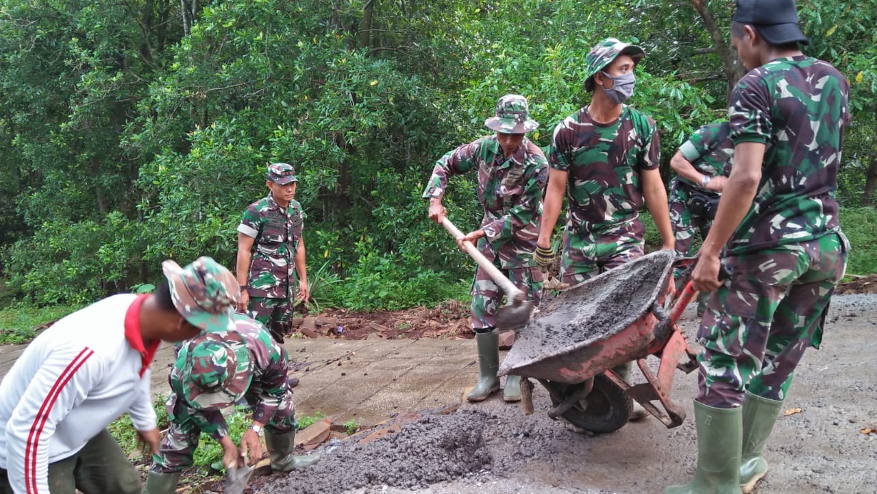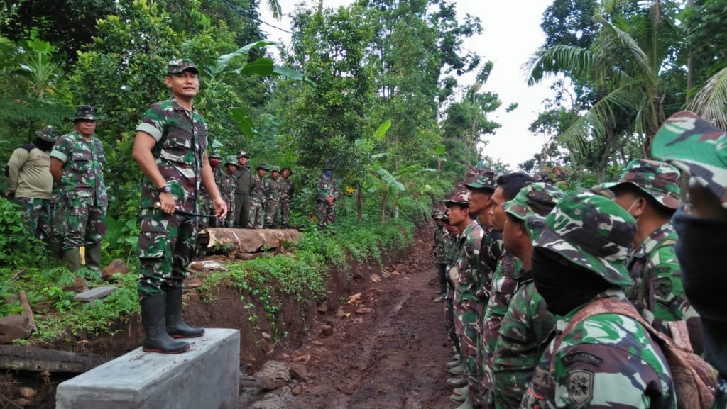 Di tengah suasana keprihatinan dan kewaspadaan bersama akan dampak pandemi Virus Corona (Covid 19), Personel Satgas TMMD tetap berjibaku dengan penuh semangat mengerjakan secara bertahap sasaran fisik sesuai rencana seperti rabat beton, pipanisasi air bersih, pembangunan MCK dan bak penampung air (reservoar).