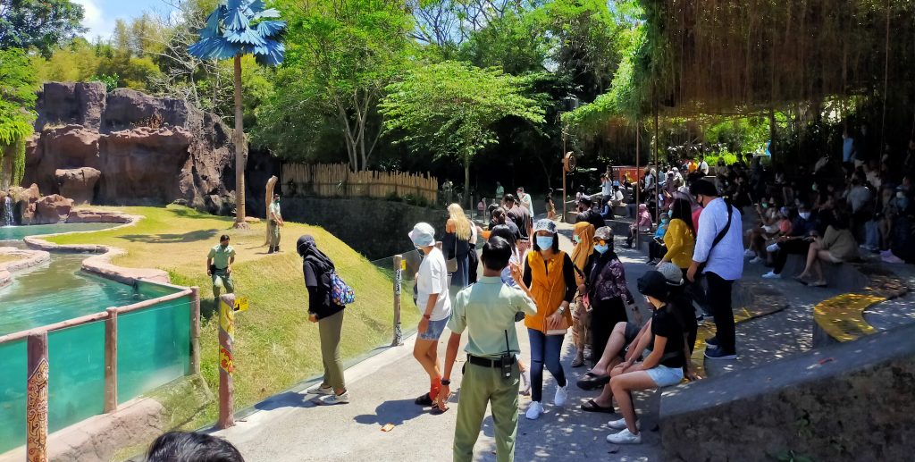 Sejak dibuka 9 Juli lalu, perlahan kunjungan wisatawan ke Bali Safari Marine Park mulai ada peningkatan. “Kunjungan di Weekday mencapai 200-300 orang. Sedangkan Weekend bisa mencapai 600-700 orang”, kata Inneke.