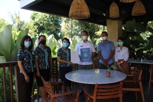 Foto bersama antara pihak Universitas Dhyana Pura dan Sanctoo Suites & Villas