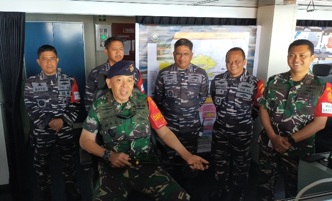 Dansatgasla Laksda TNI Yayan Sofyan (Pangkoarmada II) saat ditemui di anjungan KRI dr. Radjiman Wediyodiningrat (RJW)-992, Minggu, 8 Oktober 2023.