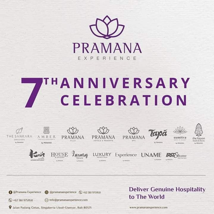 Perayaan hari jadi ke 7 Pramana Experience ini juga dirangkaikan dengan berbagai kegiatan sosial yang sudah dilaksanakan sebelum pandemi covid-19 melanda selerti Tirta Yatra pada Januari lalu, gotong royong dan pembersihan areal di masing-masing unit usaha Pramana juga sudah dilaksanakan.